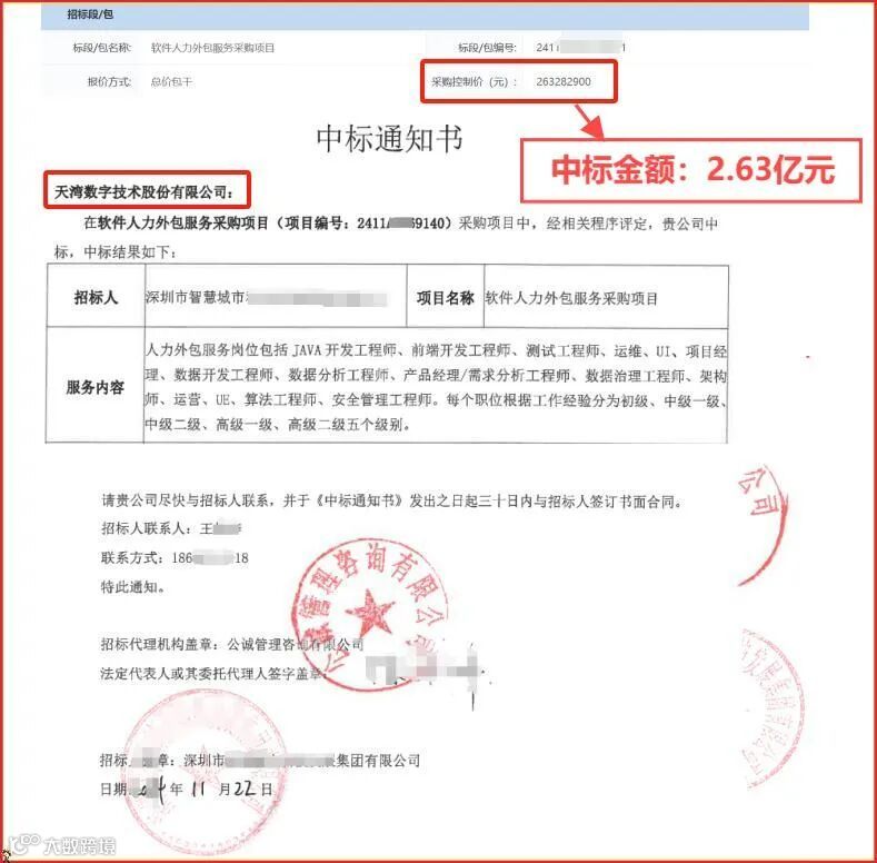 喜讯频传!此次投标竞争中,在公司领导的卓越带领下,凭借出色的方案策划、深厚的技术以及专业的服务,成功中标【深智城-软件服务项目】,中标金额为:263,282,900元。
