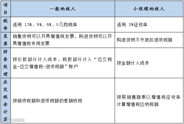 (一)小规模和一般纳税人的主要区别