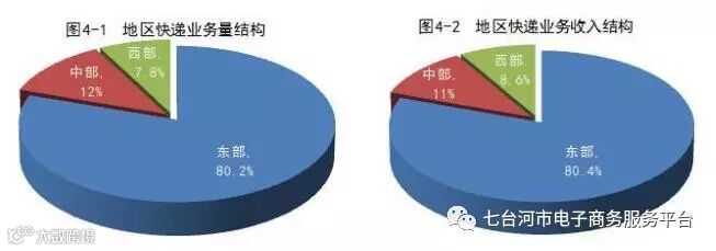 中部地区快递业务量比重下降了1.1个百分点,快递业务收入比重下降了0.7个百分点;