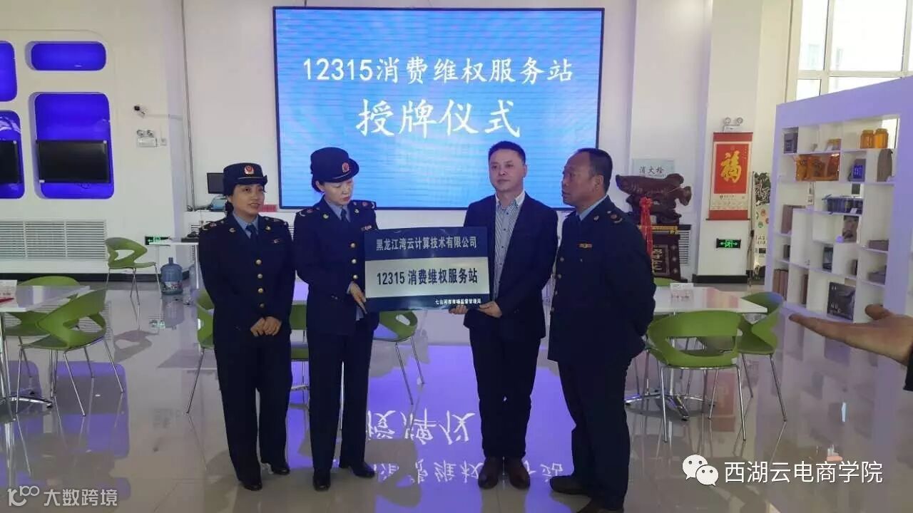 七台河市市场监督管理局为黑龙江湾云计算技术有限公司“12315消费维权服务站”授牌。