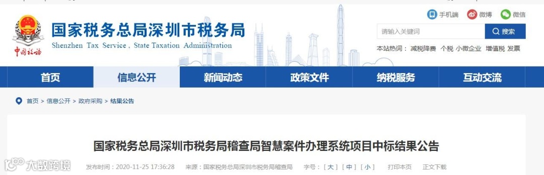 近日,国家税务总局深圳市稽查局公布智慧案件办理系统的中标结果。“智慧稽查”时代来了!