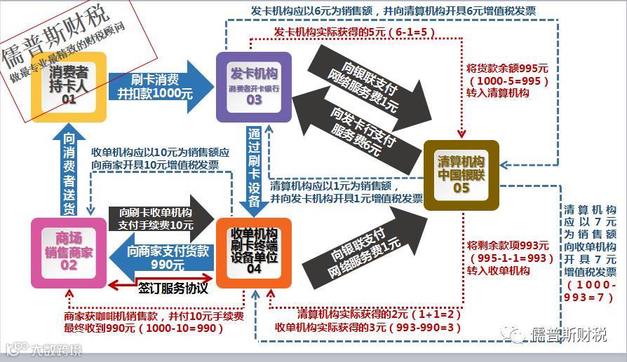 六是明确了银行卡跨机构资金清算业务中各涉税主体如何计算缴纳增值税以及发票开具等问题。