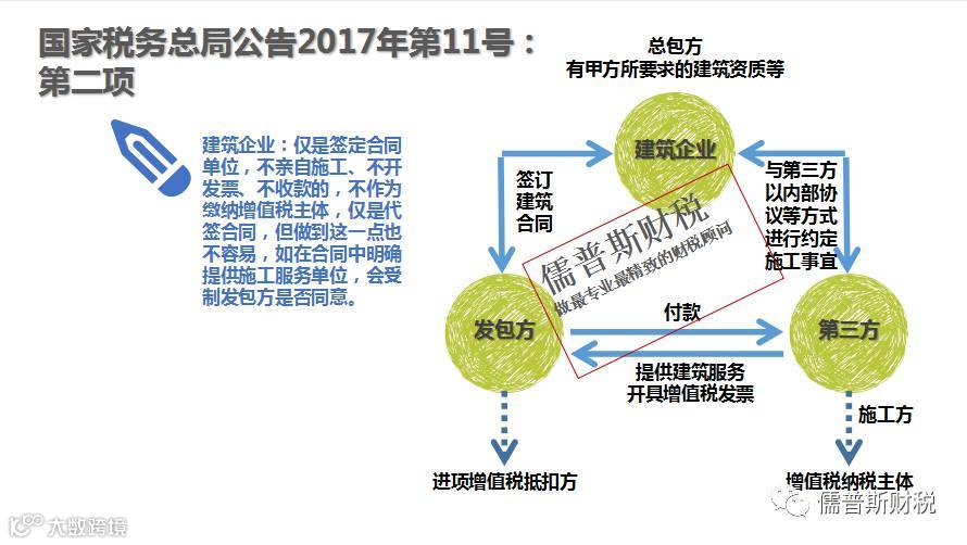 二是明确了建筑企业签订建筑合同后以内部授权或者三方协议等方式,授权其集团内其他单位提供建筑服务的,在业务流、资金流、发票流“三流”不完全一致的情况下,如何计算缴纳增值税并开具发票。