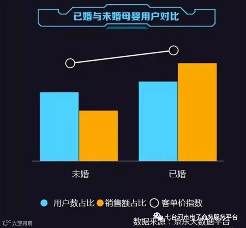 但值得关注的是,母婴类产品中,已婚人士与未婚人士的用户数量相差不大,未婚用户占比46.39%,因未婚人士购买母婴产品的订单数与消费金额远低于已婚人士,报告推算,这种情况,是因为80后作为电商的主力军正值生育高峰期,因而母婴产品是亲友互赠的重要礼品。
