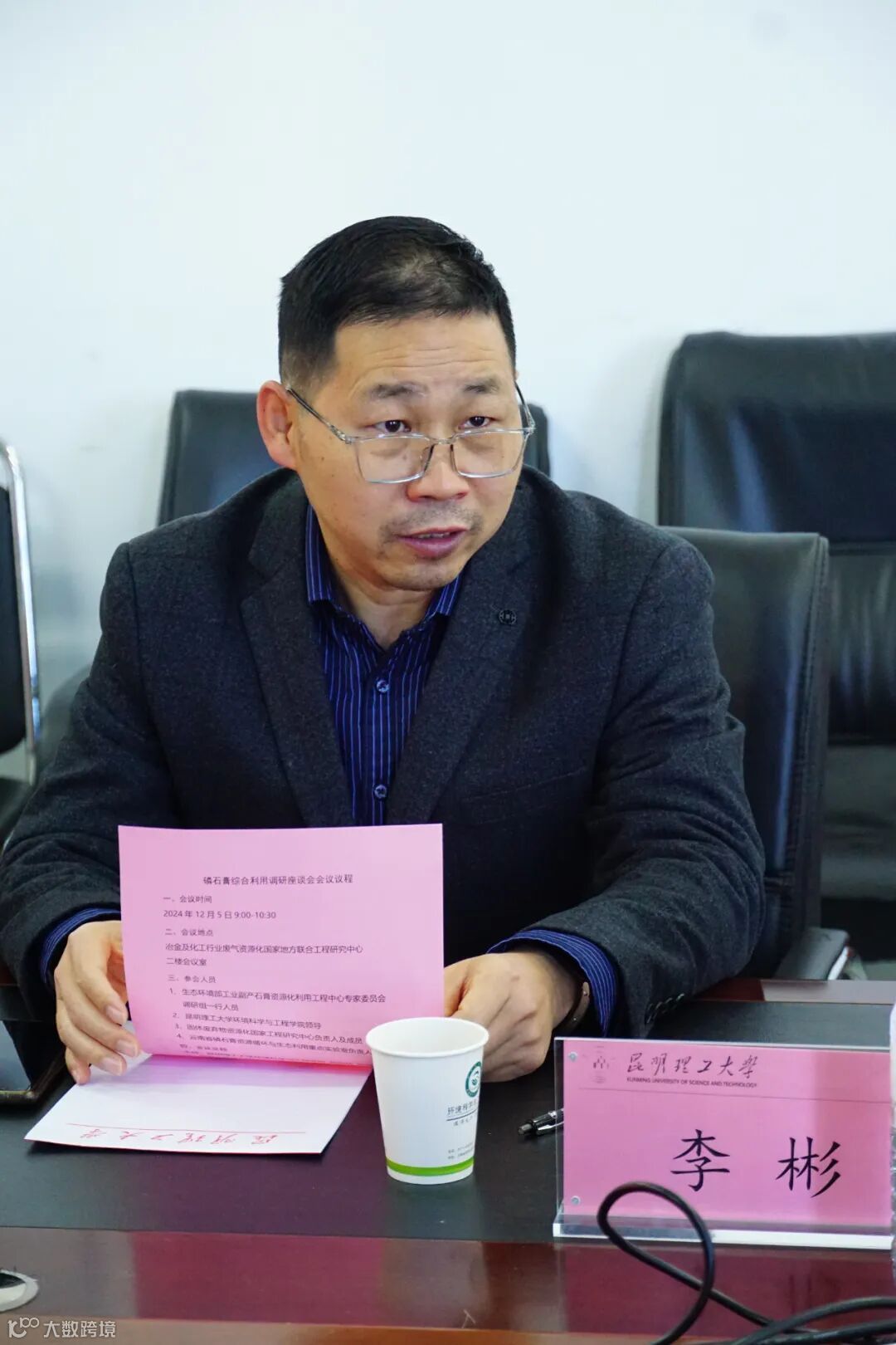 工程技术中心主任唐绍林、专家委员会名誉主任彭近新,常务副主任郑建国、副主任兼秘书长石峰,中国环境科学学会副秘书长陈永梅参加调研。昆明理工大学冶金及化工行业废气资源化国家地方联合工程研究中心主任宁平教授、环境科学与工程学院院长田森林、云南省磷石膏资源循环与生态利用重点实验室副主任马丽萍、固体废弃物资源化国家工程研究中心副主任李彬、环境科学与工程学院王学谦教授、孙鑫教授等校方代表参与接待并深入交流。