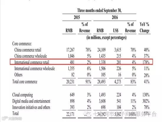 亿邦动力网了解到,此前,在阿里2016年财年第四季度及全年财报中,仅包含速卖通业务的国际零售业务营收3.42亿人民币,占总营收的2%,同比增长仅为25%。