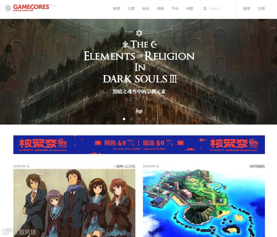 从一个猿的角度看,整个网站细节处理都很细心(首页滚动时,分栏大图也会做相对运动,形成一种视觉差滚动),而整个网站的版面也是简洁大气,没有多余的元素。细观g-cross这个项目,可以发现它不仅仅围绕着游戏做资讯,视频讲解,FM电台等周边信息聚合,而且还有自己的网店平台去售卖游戏及周边产品。再从网站的运营细究,可以发现这个平台的用户留存率也是蛮高,平台内的用户也相对活跃。综上,可以说G-cross通过结合资讯与网店的模式,聚合了一批游戏爱好者,同时通过网店再把资讯带来的这些流量变现,是个有盈利能力的项目。