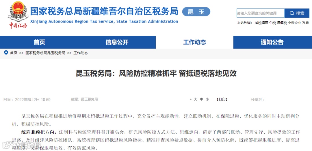 根据国家税务总局日喀则市税务局发布的通知显示:紧盯“抽查快反”,做好风险复核,按照“事后抽查”的防控要求,采取机外方式对已退税10万元以下企业由管局自行抽查,抽查率达到10%以上,对退税10万元以上的101户纳税人进行人工复核,覆盖面达到100%,并根据抽检情况建立高、中、低三级风险等级,提高复核针对性和准确性。