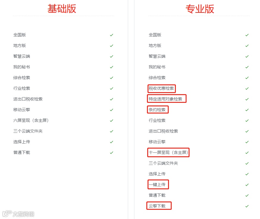 为了满足各类用户的使用需求,众智云擎税法查询及工作应用系统上线了“基础版”和“专业版”。
