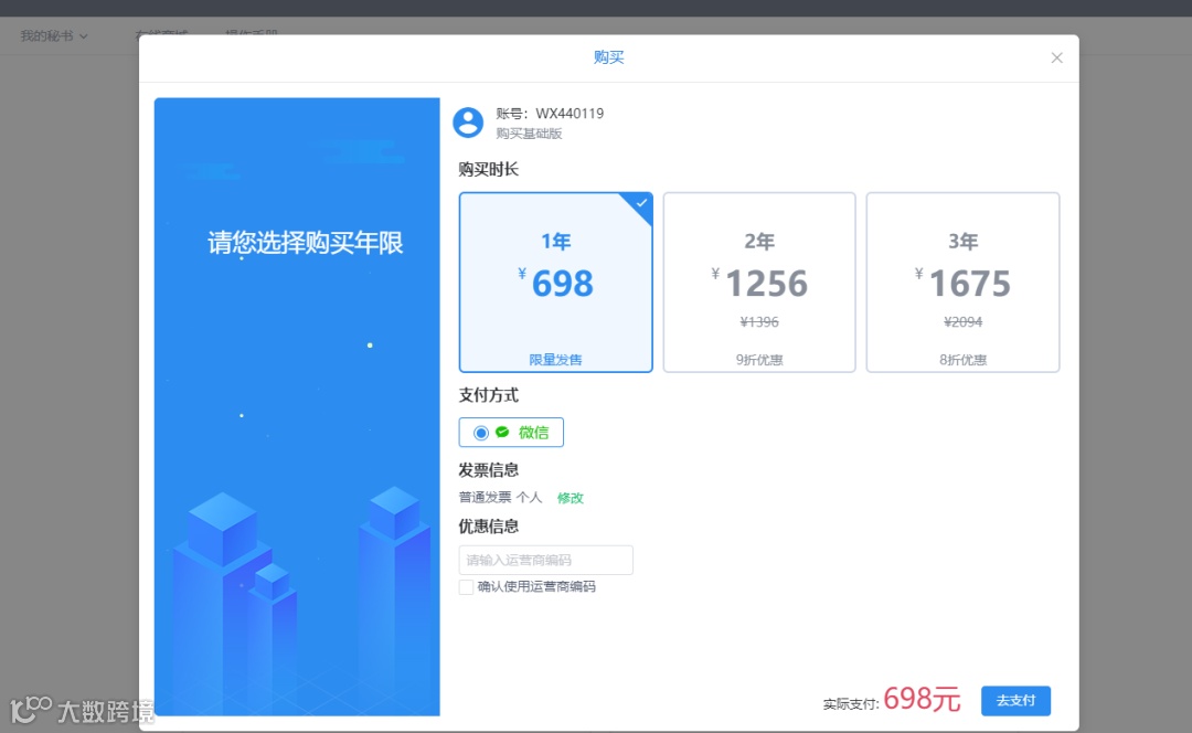 “基础版”也就是之前的“普通用户”,售价:698元/年,购买2年享9折,购买3年享8折。
