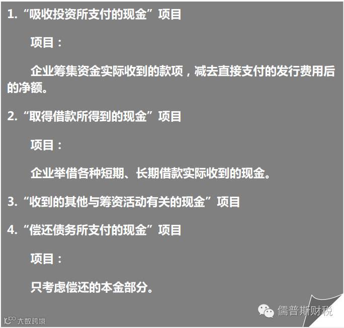 下面再进一步详细的解释现金流理表每个项目所涵盖的内容,供考大家参考: