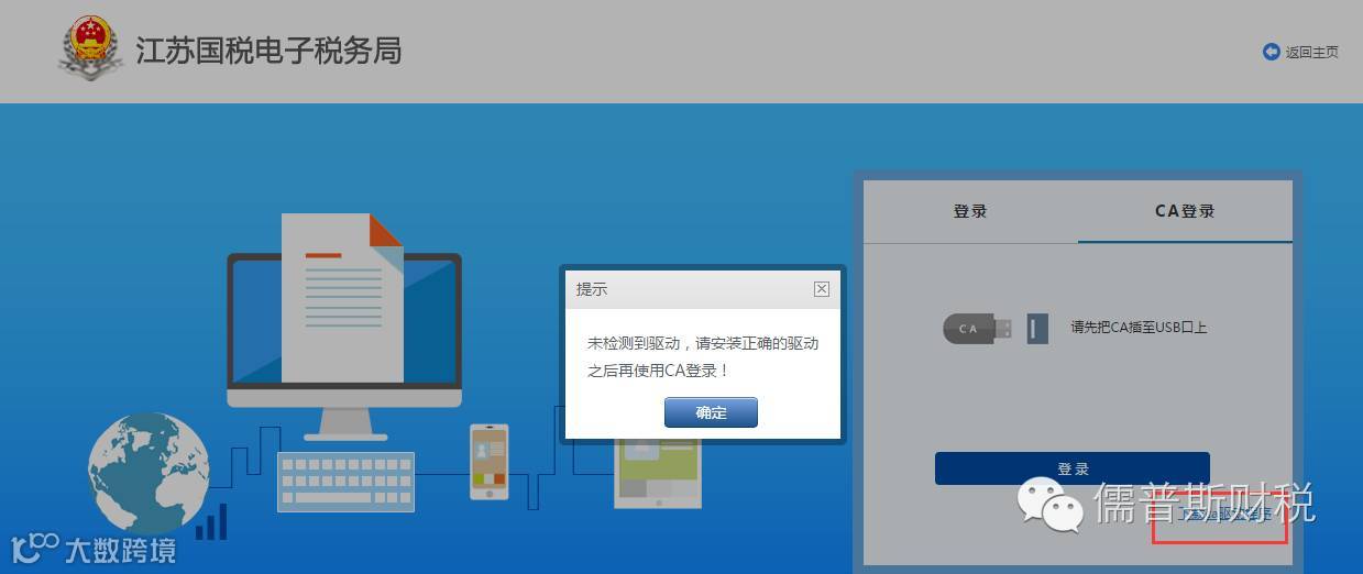 12、电子税务局ca用户登录,提示:没有检测到任何USBkey?