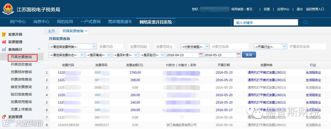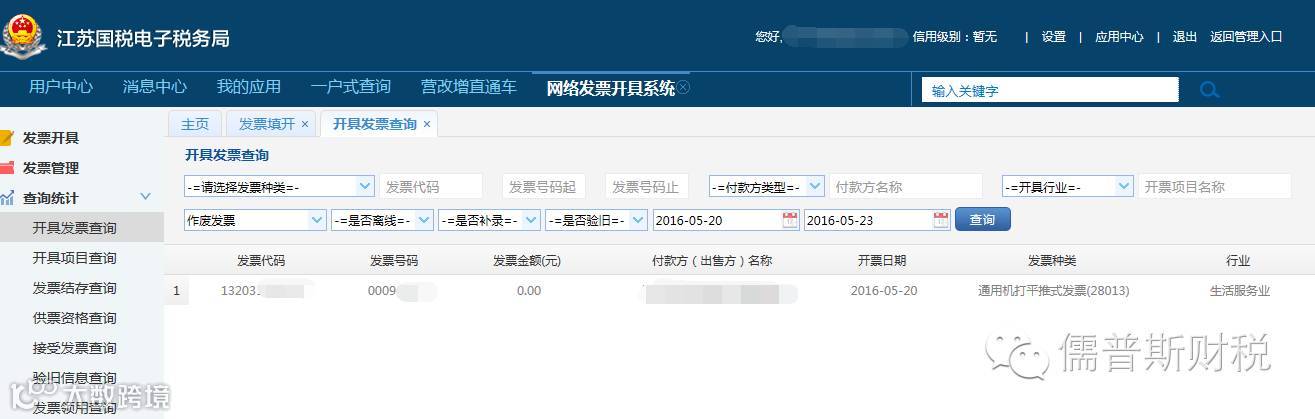 解决方案:若发票已经作废过了,在查询统计->开具发票查询页面查看该发票是否已被作废,已作废的发票颜色为灰色。
