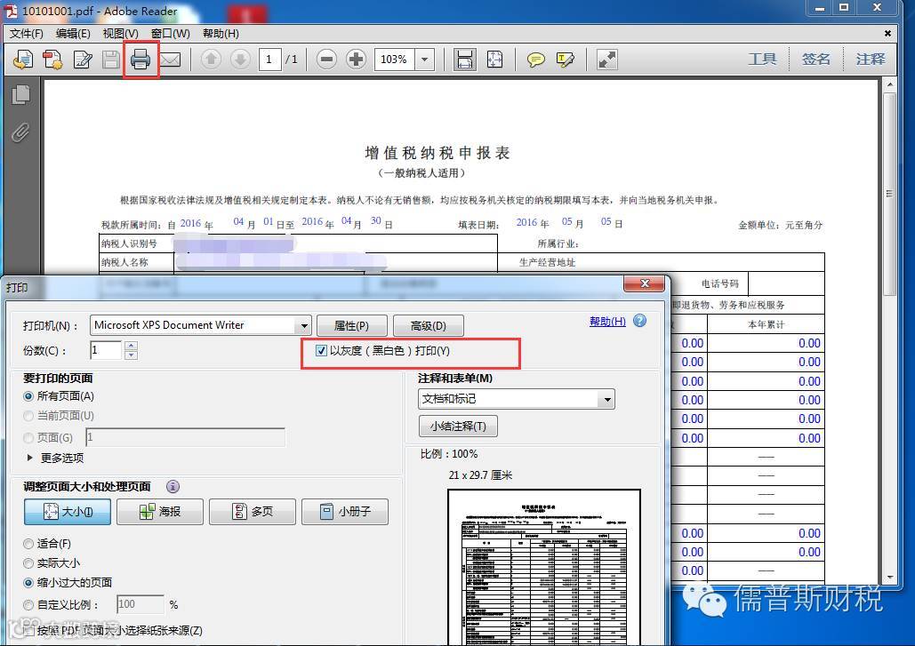 解决方案:纳税人自行进行打印设置,勾选“以灰度(黑白色)打印”。