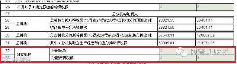 解决方案:分配比例与分配税额应当一一对应,这个纳税人是分支机构应该填写32与33行。