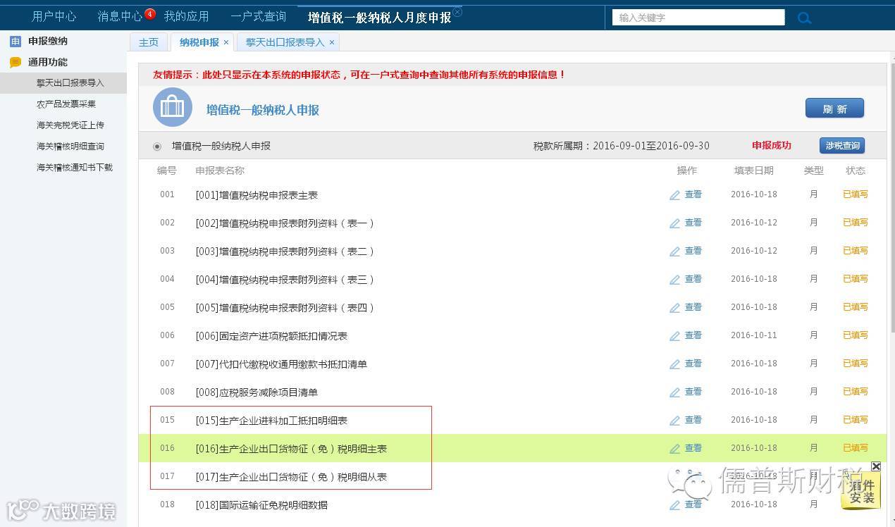 解决方案:在电子税务局“通用功能”中“擎天出口报表导入”模块中导入到015、016、017表格中。