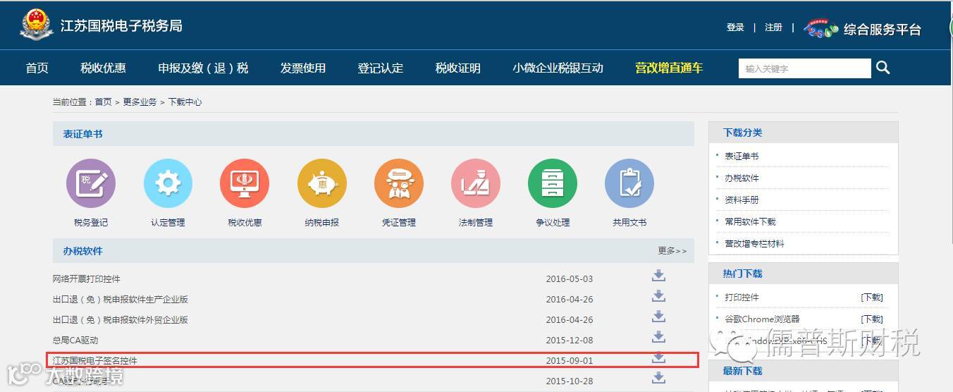 (1)在下载中心下载“江苏国税电子签名控件”,安装成功。