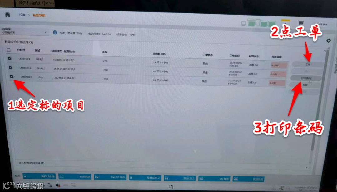 ——下一步——打印条码——贴条码,放入定标液样本(免疫的定标品是放高低两个水平。生化有很多项目是只用放一个高水平,低水平仪器会自动加水做。)