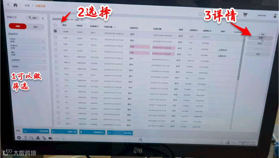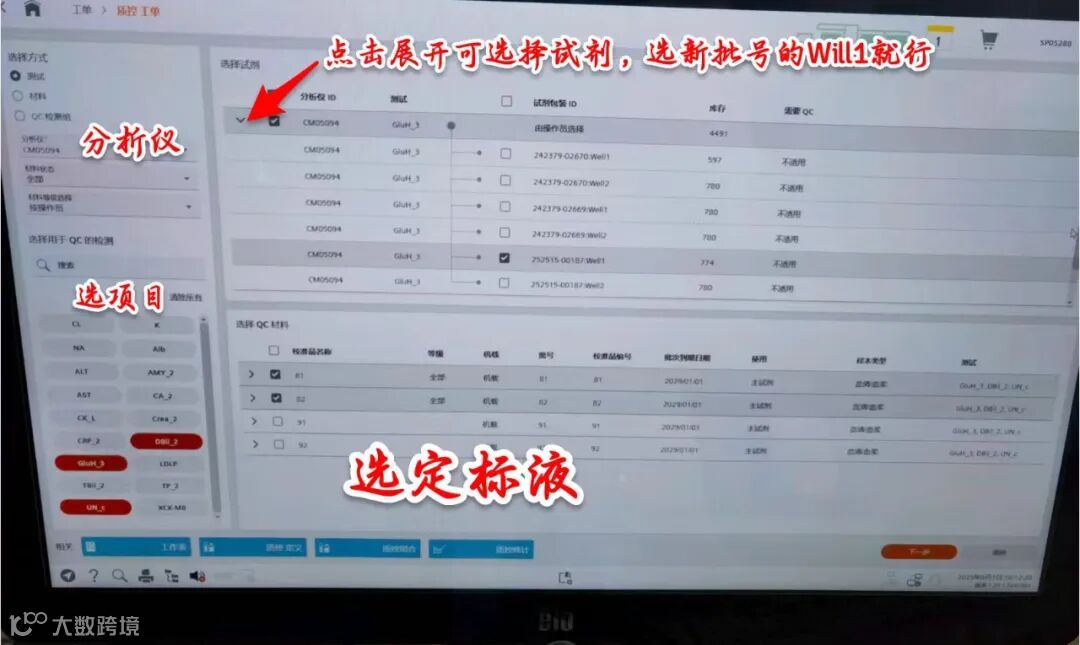 (如果旧批号在用,又定标了新批号,不选试剂,仪器会默认使用旧批号,这就需要选择新批号试剂来验证新批号定标后结果是否好)——