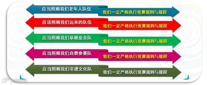 某些赛事中往往还有男性加分或年龄加分等特别规定,这种情况下裁判员遵照《竞赛规程》规定执行即可。但需要特别注意的是,无论男性加分、年龄加分还是其他加分条款,都是要以评判参赛队的整体表现优劣为前提,而不应存在非理性的额外照顾。所谓鼓励,是指必须在同等条件、同等水平的情况下的鼓励,否则,不仅不会给所在队伍增光添彩,反而会被减分。