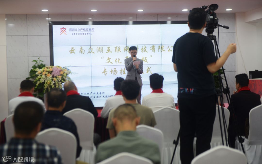 2018年11月8日,深圳文化产权交易所(深圳市文化金融服务中心)云南众湖互联网科技有限公司“文化产业板”专场挂牌仪式,在深圳文化产权交易所二楼活动大厅成功举行。此次挂牌仪式,也邀请了该公司内部高层领导以及企业员工出席本次活动。