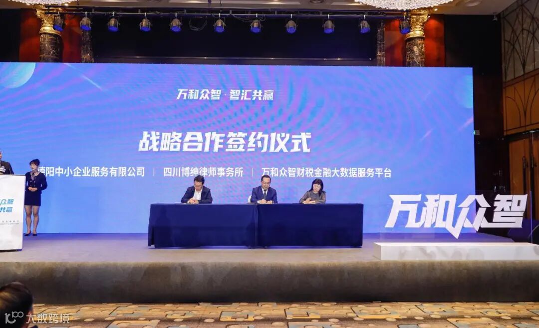 在现场,万和众智财税金融大数据服务平台与7家各行业头部企业现场签订战略合作,成功走出“跨界经营、跨区合作”的一大步,彰显平台“集众智,天下万和”这一共赢理念。