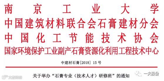 随着我国经济的发展,全民环保意识的提高,我国以工业副产石膏应用为主要内容的石膏行业进入了高速发展阶段,为适应石膏行业高速发展对于技术人才的迫切需求,南京工业大学-中国建筑材料联合会石膏建材分会-中国化工节能技术协会-国家环境保护工业副产石膏资源化利用工程技术中心四单位校企联合办学,拟每年定期举办“石膏专业(技术人才)研修班”。第一期研修班拟于2018年9月17日在南京工业大学开办举行,为期三个月。有关培训事项具体如下: