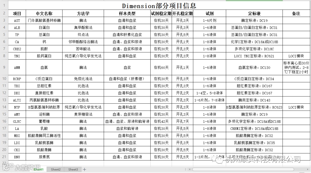 部分项目试剂情况