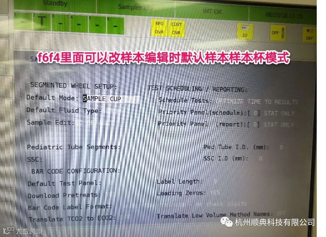 如果常用样本杯的用户,可以到F6-F4界面将默认样本类型改成SAMPLE CUP,这样编辑的时候默认的就是样本杯了。