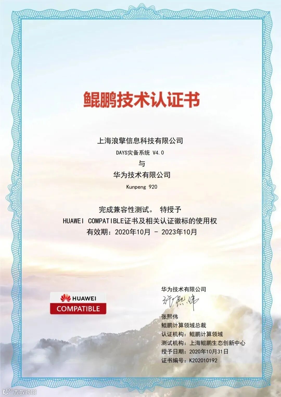 浪擎科技已完成鲲鹏芯片和华为泰山服务器等产品的适配互认证。其中浪擎DataOne数据融合汇聚系统 V4.0、浪擎DAYS数据备份与恢复系统 V4.0与 华为芯片Kunpeng 920完成适配性认证。浪擎DAYS数据备份与恢复系统 V4.0、浪擎DataOne数据融合汇聚系统 V4.0与华为服务器TaiShan 200系列完成适配性认证。