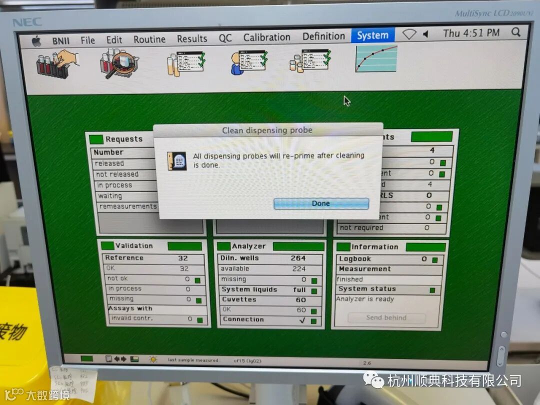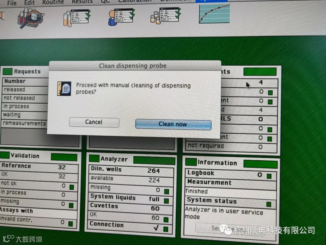 步骤:System-User service-Clean dispensing proble——Yes——Clean now——翻开盖板进行擦针,擦完盖回盖板——Clean done——Done。