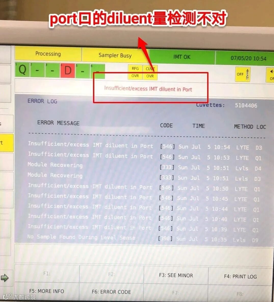 1、Dimension耗材里有一个试剂探针洗液和电解质的稀释液瓶子大小一样,稍有不注意就有可能拿错,所以换稀释液(Diluent)的时候最好核对一遍。