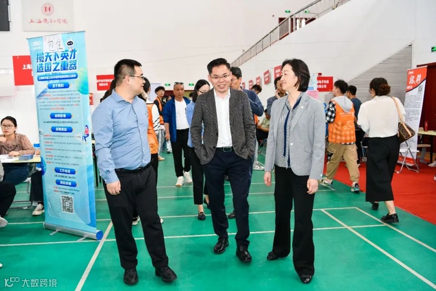 临港新片区管委会党群工作部副部长杨武、上海电机学院党委书记、院长龚思怡来到招聘会现场与大家亲切交流。