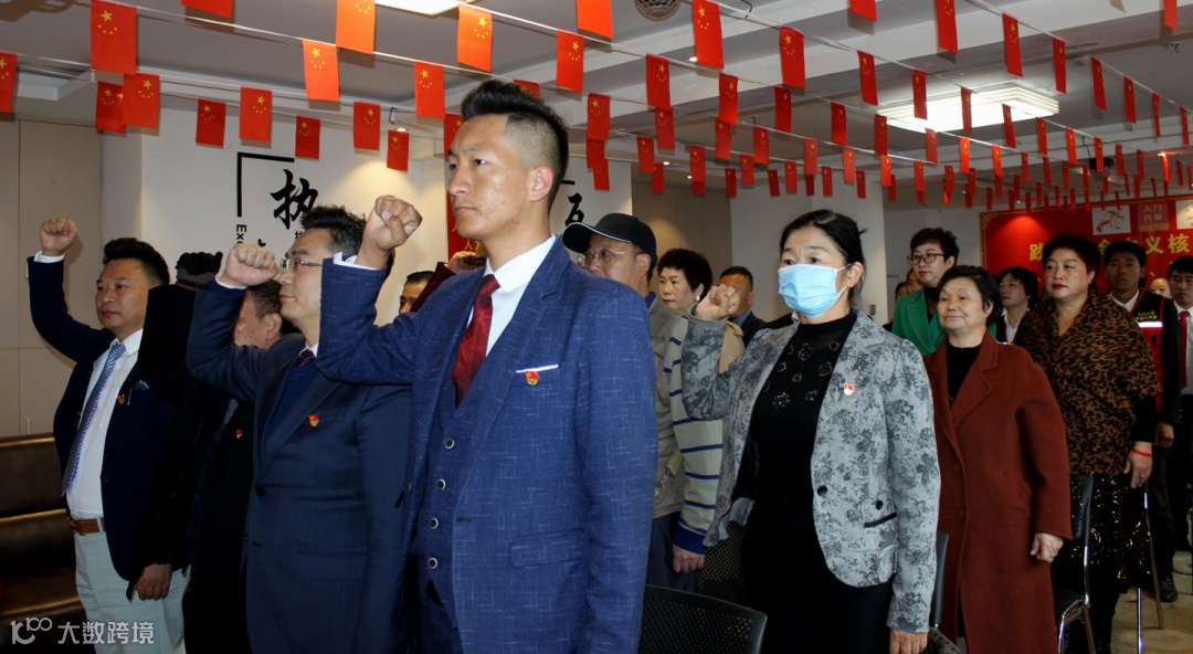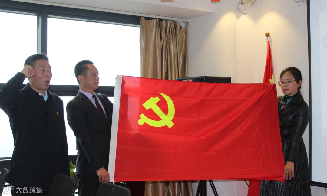 在第二项议程中,全体党员起立,面对党旗,在主持人的带领下重温宣读《入党誓词》。