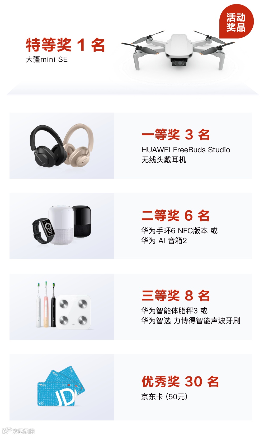 为了提升鲲鹏/昇腾社区的体验,现诚邀您参与鲲鹏/昇腾社区用户满意度调研活动,旨在了解您在社区的使用现状,为您创造更好的用户体验。完成调研后可参与抽奖,大疆无人机等你来拿,还有FreeBuds Studio无线头戴耳机、AI音箱、电动牙刷、京东卡等丰富奖品!