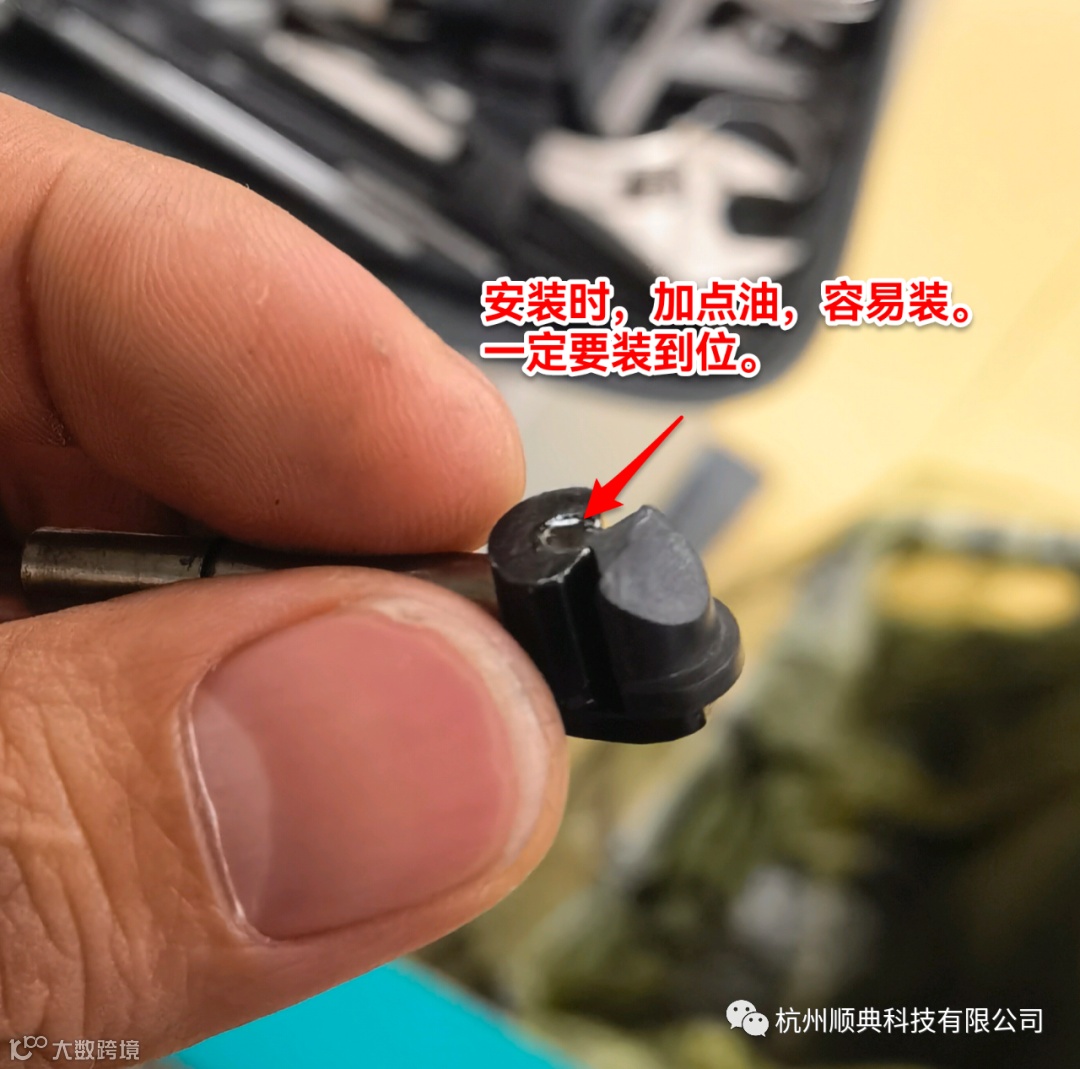 1、橡胶头的安装,要顶到最上面,不然橡胶头容易左右晃动,造成不稳定。安装时,直接套进去阻力很大,很难套到最上面,可以在槽里加一点润滑油,让橡胶头能更好的装上去,且好卡到最里。