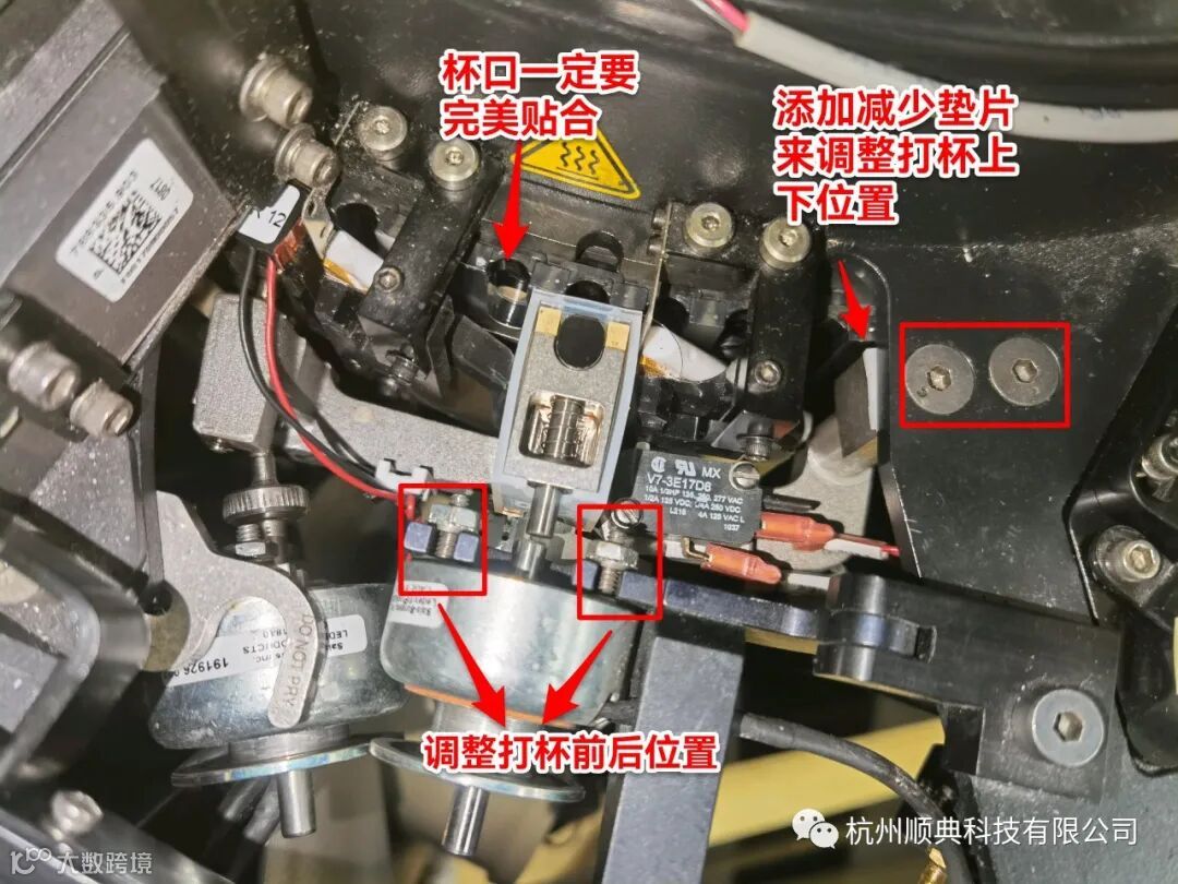 打杯时声音较大,有可能往前打的电磁阀的顶杆和橡胶头的顶杆没对好,调整一下电磁阀的高度,让两根杆子对好,声音就会好很多。