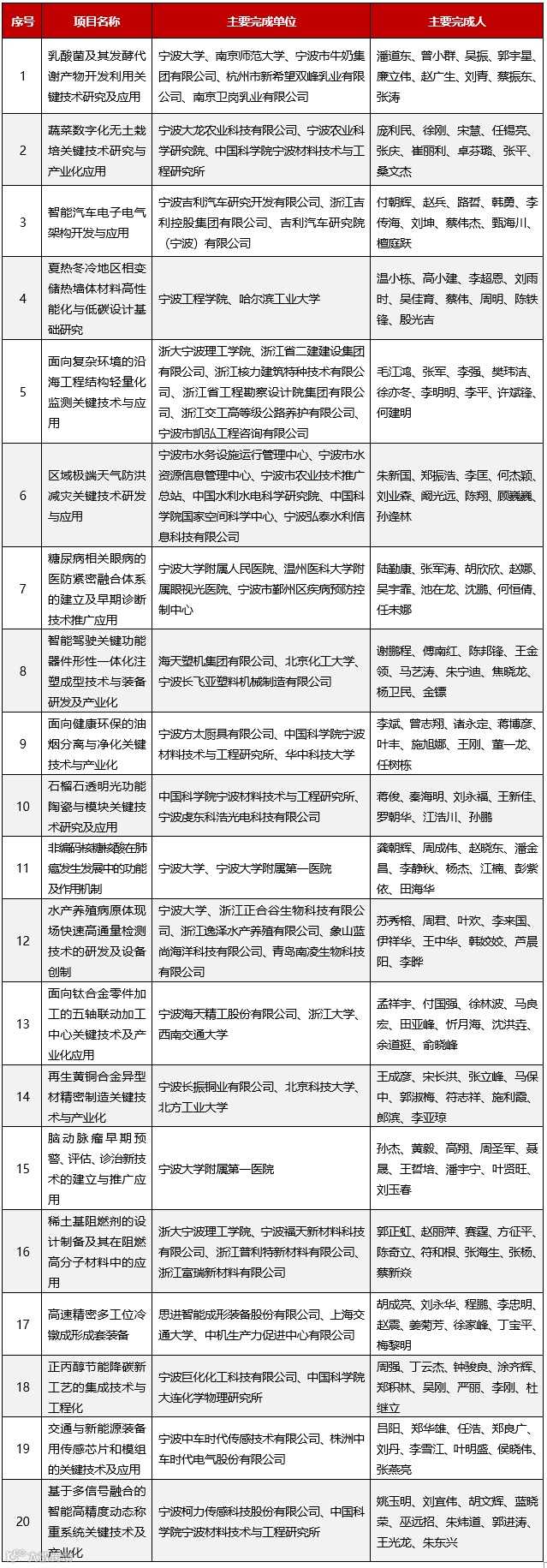 二等奖(20项)