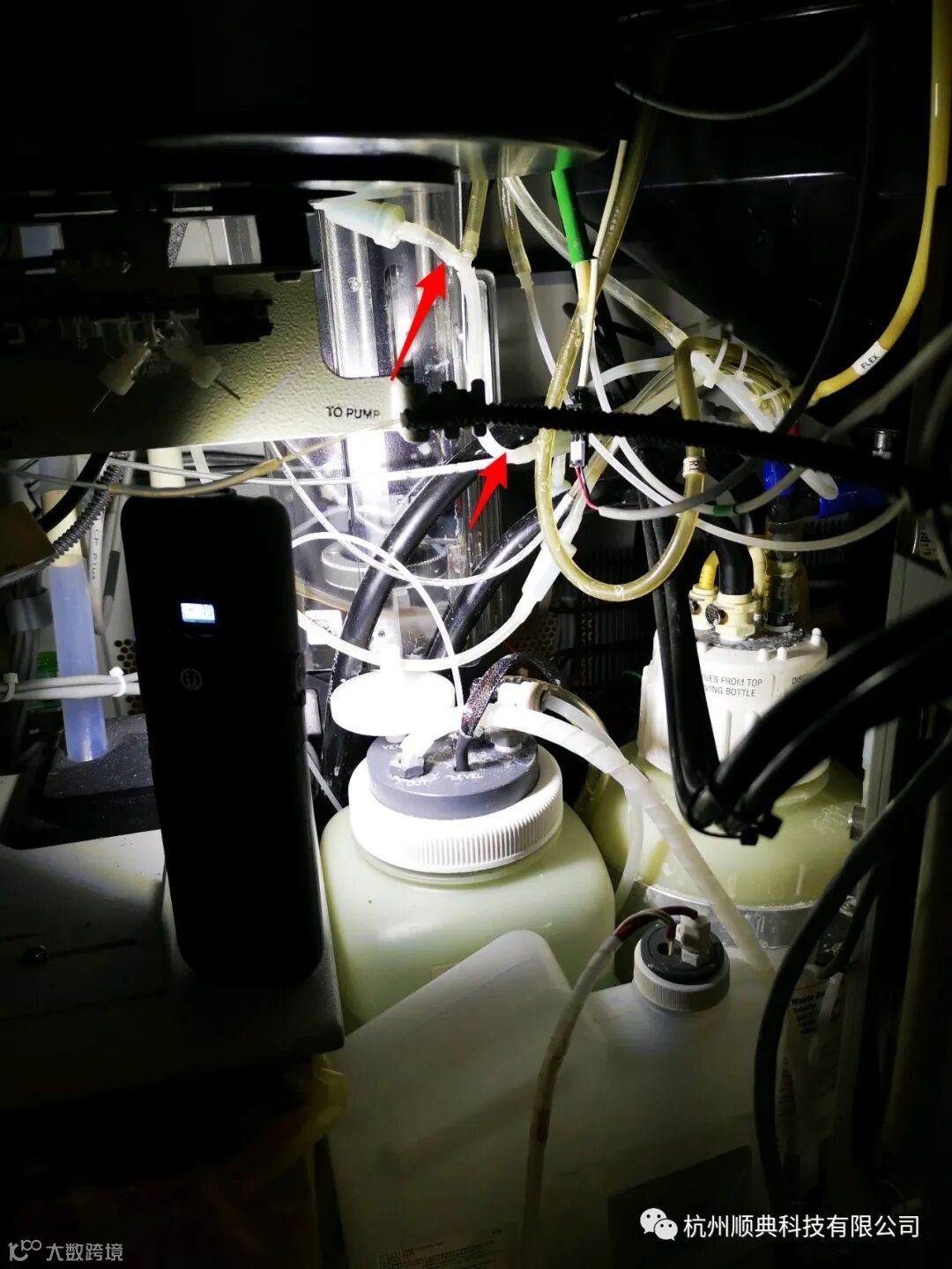 二、发现水桶附近有水,漏水点重点查找:水桶上面的管路接头,样本针清洗口管路上的过滤器,仪器的自动进水阀。