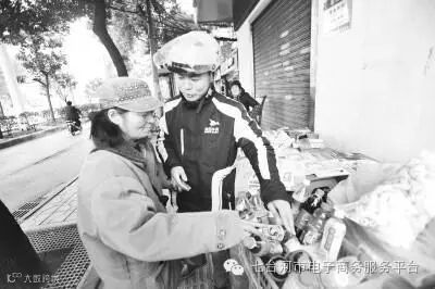 ▲昨日,四美塘事发报摊的齐阿婆送水给张小龙喝,表示感谢。