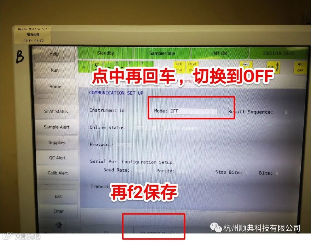 3、把通信模式切换成OFF 后点F2保存,再退出到主界面