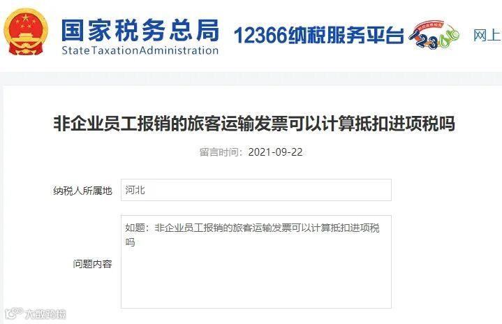 近日,在12366纳税服务平台上有人提问: