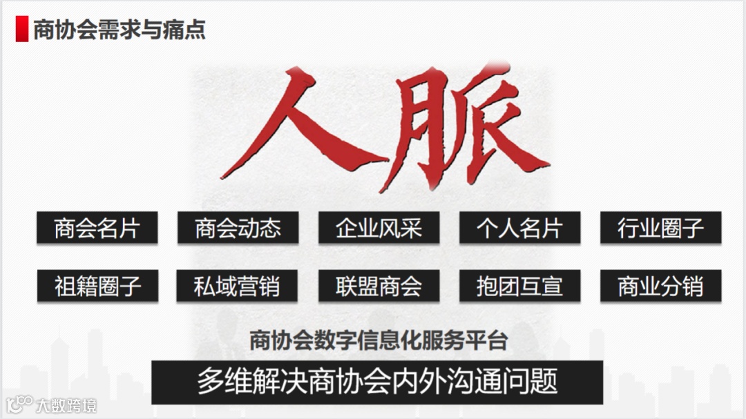 探客猫市场总监孙海涛就人脉与钱脉,剖析了商协会运营的需求和痛点: