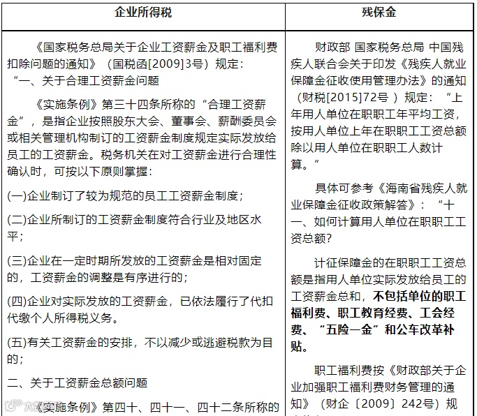 一、企税汇缴工资总额与残保金申报工资总额差异