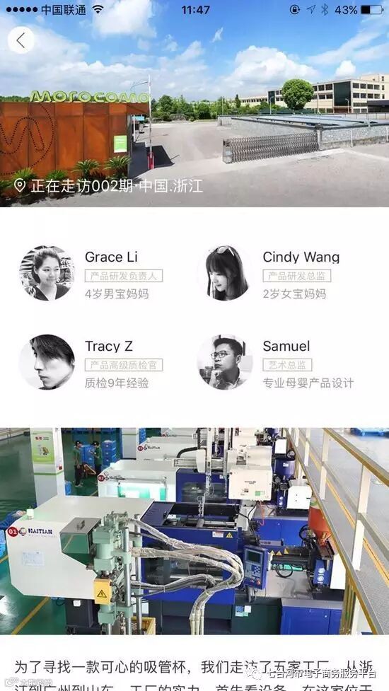 这些自有品牌的商品详情页中还有“验厂实录”的板块,通过文字和图片结合的方式介绍商品的生产工厂、产品研发团队等等信息。