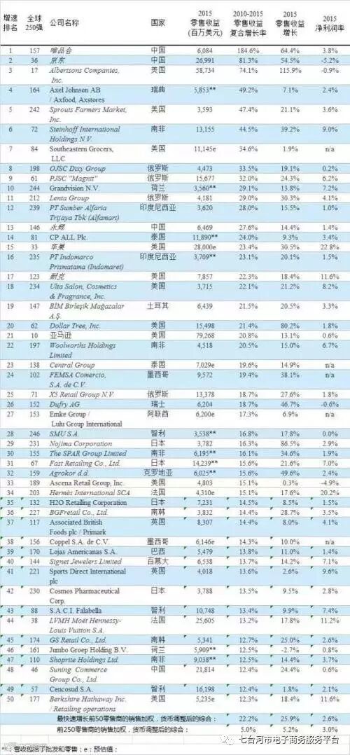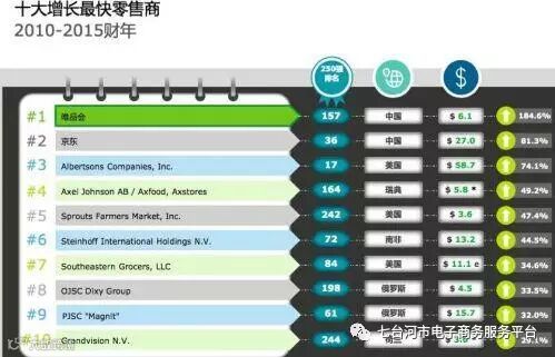 唯品会和京东位列全球十大增长最快零售商榜单前两名。