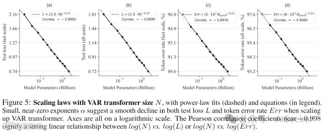 实验数据验证 VAR 的设计遵从标度律(Scaling Laws),也说明了该方法的有效性和提升潜力