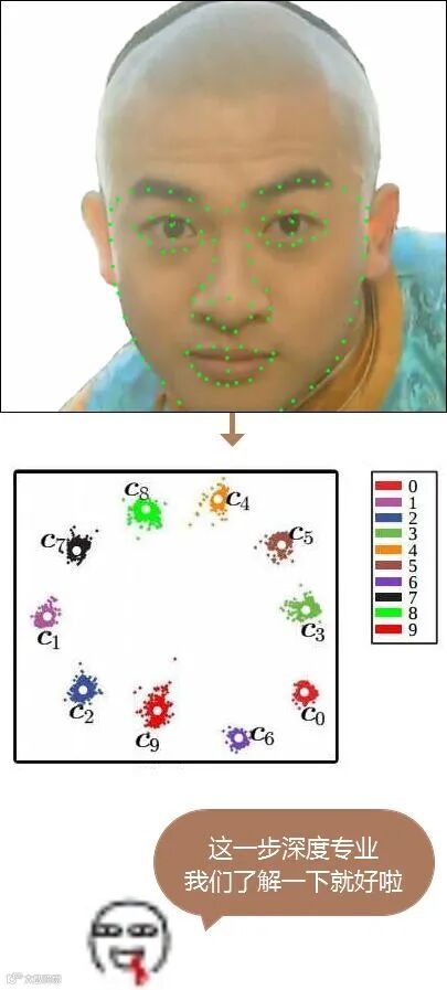 到这里,机器就会把前面人脸关键点的定位转换成具体的向量数据来表示。