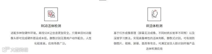 ※ 支持RGB活体、IR活体检测,可满足单目、双目人脸识别终端产品活体检测应用。