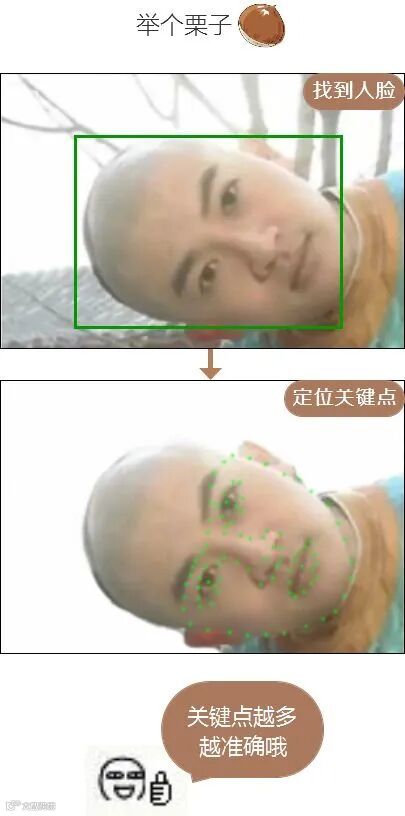 机器也是如此,它需要去找到人脸上的一些关键点,比如眼角、鼻子、下巴的轮廓等等,把握特征,也就是定位五官关键点。
